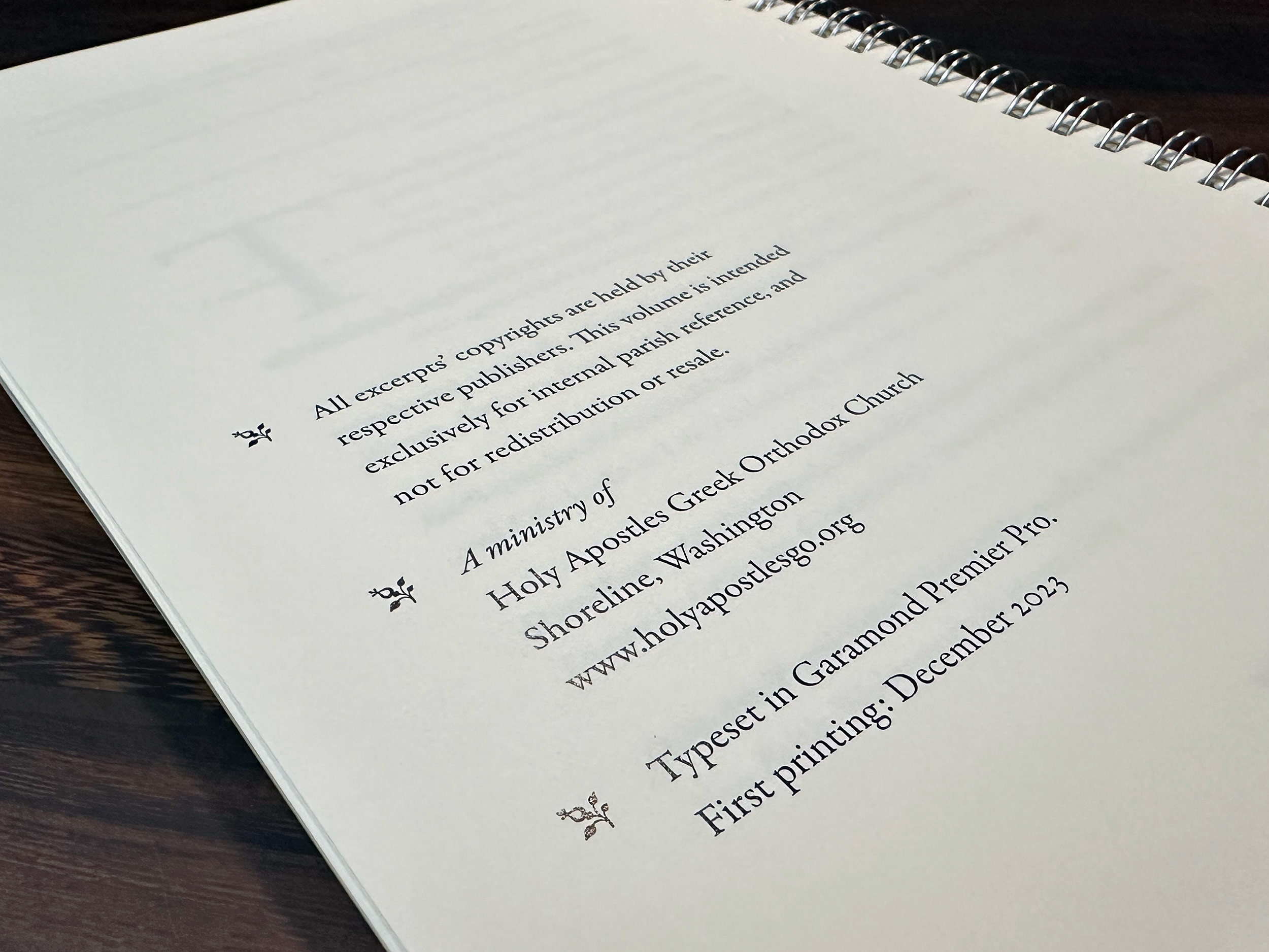 Book design & typesetting for Holy Apostles’s catechesis-class books.